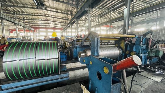 Автоматический стальной лист разрезая линию со стабилизированно скоростью и контролируемую роликом PLC 5 выравнивая с тяжелым типом гидравлическим decoiler. Эта толстая плита разрезая линию, также вызвала slitter катушки металла, может разрезать толстую стальную мастерскую катушку в небольшие катушки младенца. Толстая катушка разрезая линию составлена: автомобиль катушк-загрузки, двойное uncoiler крупно-нагрузки дорна, портальный проводник катушк-головы стиля, оборудование прессы и лопаткоулавливателя, двойной ролик сжимая фидер, разровнитель 5-ролика, конц-резец, таблица крена, центральный aligner, slitter диска, моталка утиля, аккумулятор отверстия, пре--separator& tensioner, портальные катушк-разделитель и presser стиля, recoiler, катушка разгружая автомобиль, гидравлический контроль, и электрический контроль.